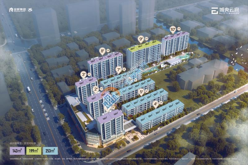 户型:建面约143㎡、199㎡小高层、252㎡上下叠。