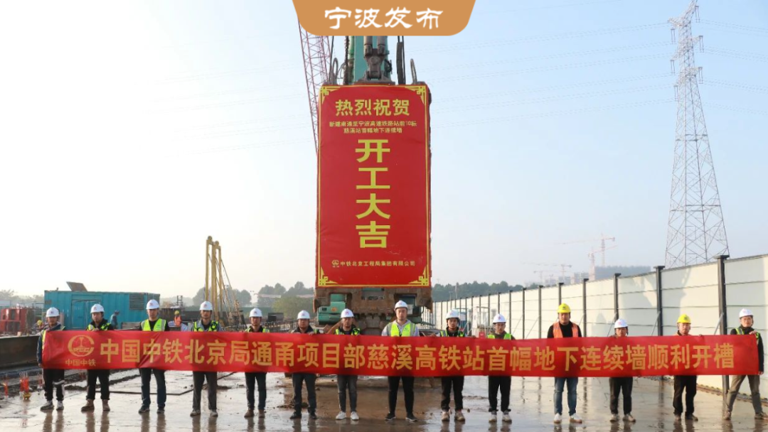 该站与通苏嘉甬高铁慈溪站实现零换乘,后期宁波市域铁路余慈11号线也将接入该站。首幅地下连续墙长42米,钢筋笼总45.4吨。该站主体结构设计共177幅,最深地下连续墙达57.7m。