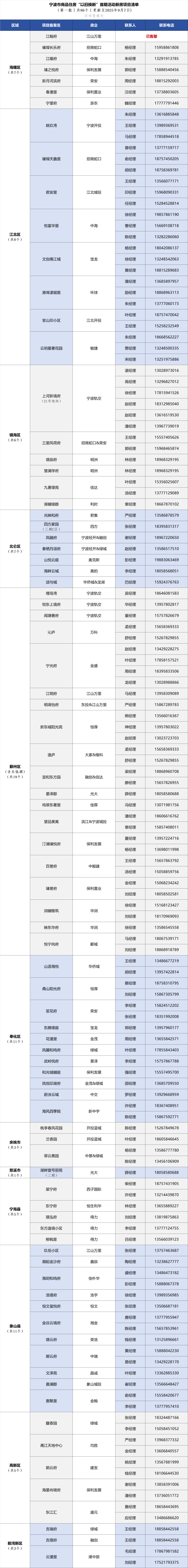 记者今天从城投置业获悉,在早前公布的第一批共计80个新房项目基础上,又最新纳入了6个在售新房项目,分别是海曙区的宁望府、北仑区的颂与城,以及宁海县的东宁府、璟泓府、东方逸境小区、柳枫里