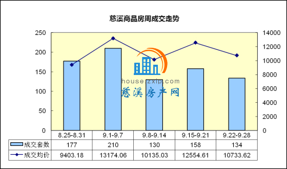 慈溪上周(9.22-9.28)成交各类房源(含住宅、公寓、商铺、写字楼和车库)共计134套,成交均价10733.62元/㎡,成交面积为17920方。环比上上周成交量下跌15.2%,成交均价下跌14.51%,成交面积下跌18.2%。即将到来的十一黄金周,成为“金九”和“银十”的纽带,同各大名胜景点一样,慈溪的各个楼盘项目也开始紧锣密鼓地进行备战,准备好好把握这个全年中非常重要的销售节点。比如绿城御园史无前例“国庆认购直减5万”,141㎡边套三房即将加推;绿城诚园10月1日-3日举办“梦幻迪士尼 美食嘉年华”活动;橡树湾小区国庆七天推出“国际马戏嘉年华”。