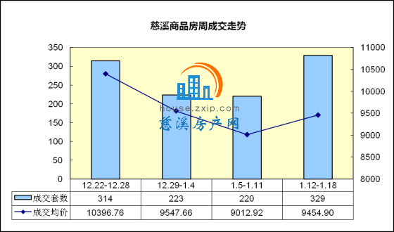 慈溪上周(1.12-1.18)成交各类房源(含住宅、公寓、商铺、写字楼和车库)共计329套,成交均价9454.90元/㎡,成交面积29185方。环比上上周成交量上涨49.54%,成交均价上涨4.90%,成交面积上涨92.89%。