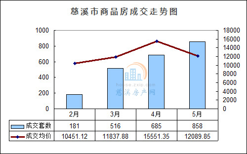 据慈溪房产网数据统计显示,5月份慈溪新房市场共成交商品房(含住宅、公寓、商铺、写字楼和车位)858套,成交均价12089.85元/平方米。保利滨湖天地王牌户型入市,御溪雅苑、龙湖香醍漫步、金沙半岛等新盘入市,销售量均有火爆之势,使得5月慈溪楼市趁势火了一把,“红五月”当之无愧。 在板块成交方面,由于保利滨湖天地和御溪雅苑两大项目开盘加推火爆热销,使得宗汉街道再度成为慈溪楼市成交最热板块。